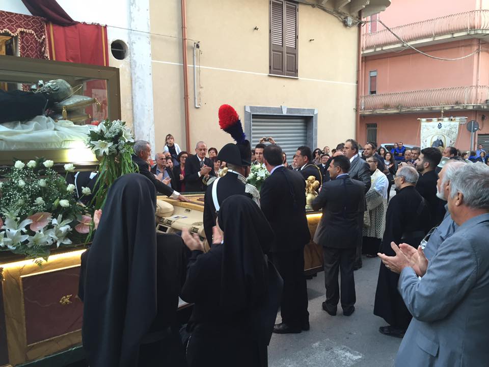 Domenica 6 novembre il corpo di San Paolo della Croce è stato accolto a Borgetto (PA) da una folta schiera di fedeli festanti. A guidare la processione per le vie del paese è stato padre Francesco Di Mariano, superiore della Comunità religiosa di Borgetto. Presenti l’amministrazione comunale, le autorità militari e religiose e tutte le confraternite del paese. Il corteo religioso si è fermato davanti alla chiesetta della Madonna di Loreto per l’inaugurazione di un tratto di strada dedicata al Fondatore. Dei suggestivi giochi pirotecnici hanno illuminato l’arrivo del corpo di San Paolo della Croce al Ritiro di Borgetto dove monsignor Michele Pennisi, arcivescovo di Monreale, ha presieduto la solenne Celebrazione Eucaristica alla presenza di alcuni confratelli, di Mario Madonna Consultore Provinciale e di centinaia di fedeli.